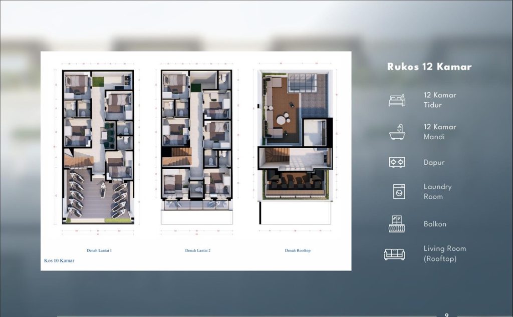 Konsep Rumah Kost eksklusif 4 lantai dengan fasilitas rooftop, memadukan estetika modern klasik yang elegan dan fungsionalitas tinggi.